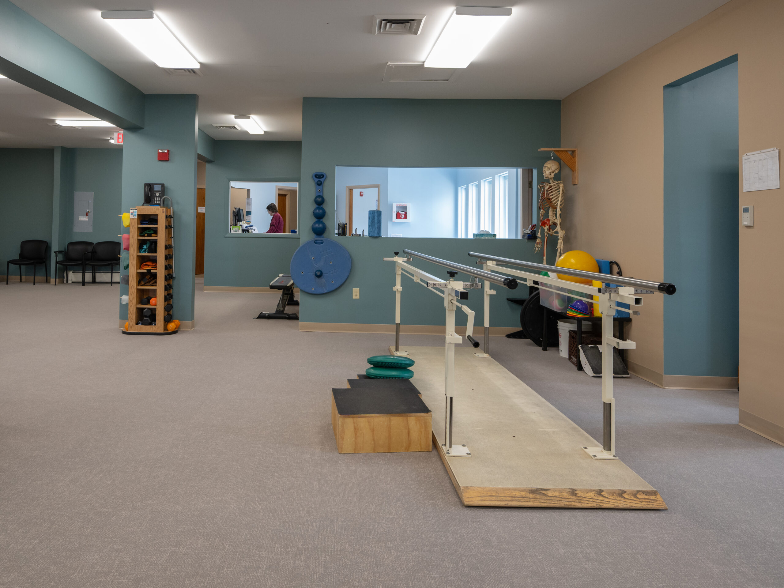 Previously, the rehab gym and treatment rooms on the lower level of the same location were undersized for the needs of the local community. Limitations restricted the number of patients scheduled for treatment on a given day and meant that administrative supplies and equipment storage intruded on patient care areas.
